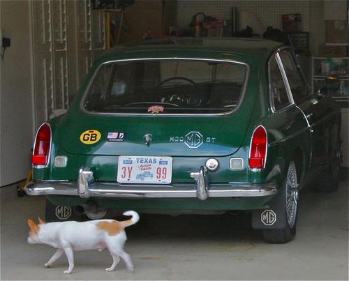 1953 MG TD BRG, 1962 MGA MkII with Judson Supercharger, 1968 MGC GT Forest Green with Triple Carbs, 1961 Ranchero two-tone red/cream