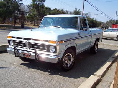1977 Ford F-100 Ranger XLT, 351M (modified from factory) engine, automatic transmission rebuilt in 2000, short bed, desirable options: power steering, power brakes, air conditioning rebuilt, intermittent wipers, dual exhaust front to back with 2.5 inch Flowmasters, sliding rear window, front bumper guards. Light blue original paint, original dark blue interior. New: wheels and B.F. Goodrich tires. This ranger has always been garage kept. North Carolina truck since new. Current owner has owned it 30 years, always garaged. Wheels are from a 1993 Ford F-150 truck. Vin # F10HN002261, data trim plate: 117 8 F 103 CB4 G 06 J. $8900. 336-830-2851, North Carolina. Email for pictures: wwhitfield@triad.rr.com delivery available world wide. New 2 1/2 inch flowmaster exhaust system from manifold back to rear has just been added.